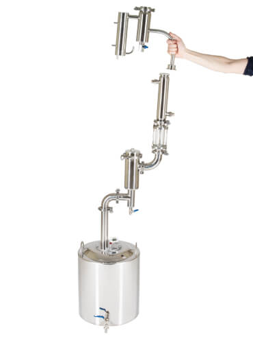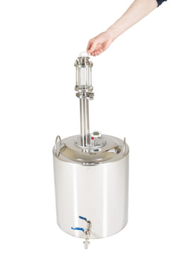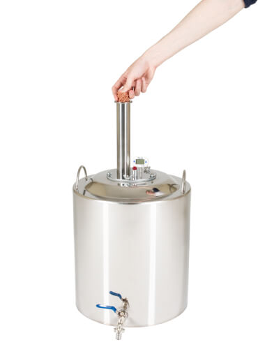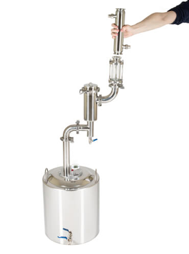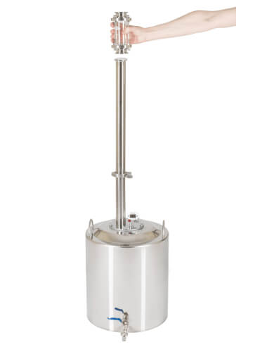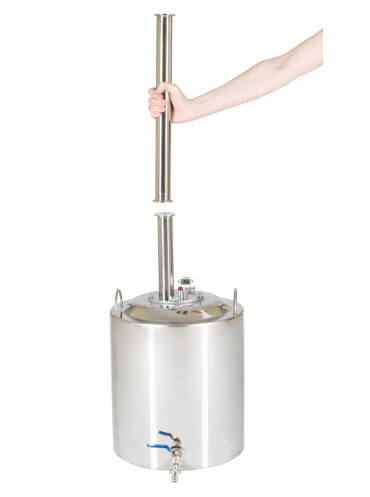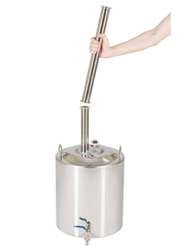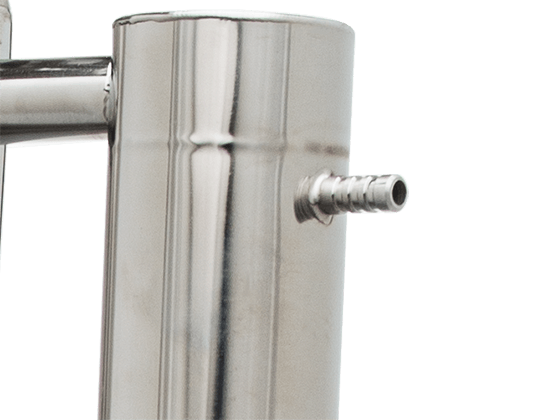 Широкие соединительные трубки диаметром 18 мм и спускной клапан гарантируют полную безопасность при перегонке. Закупорка исключена.